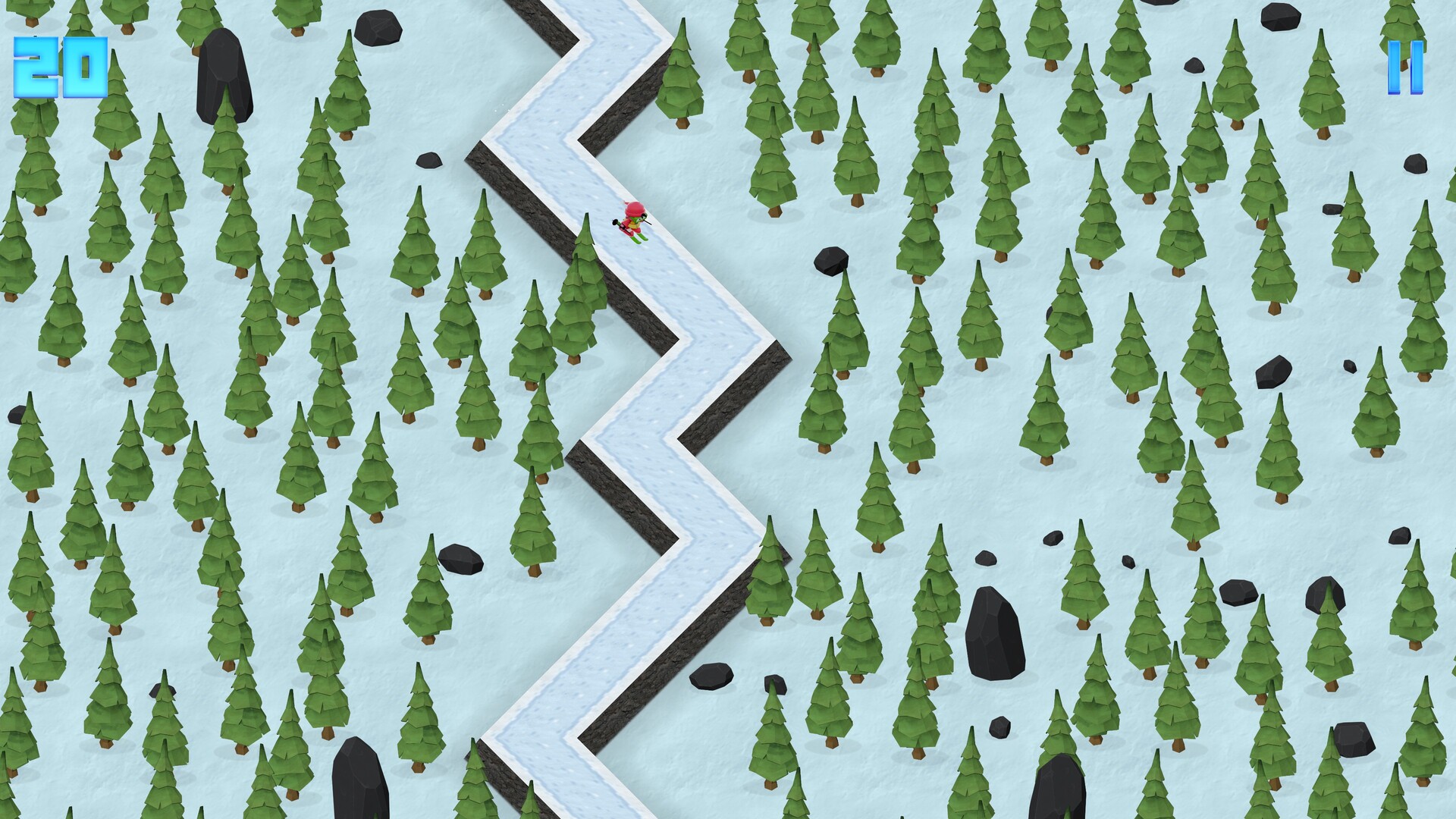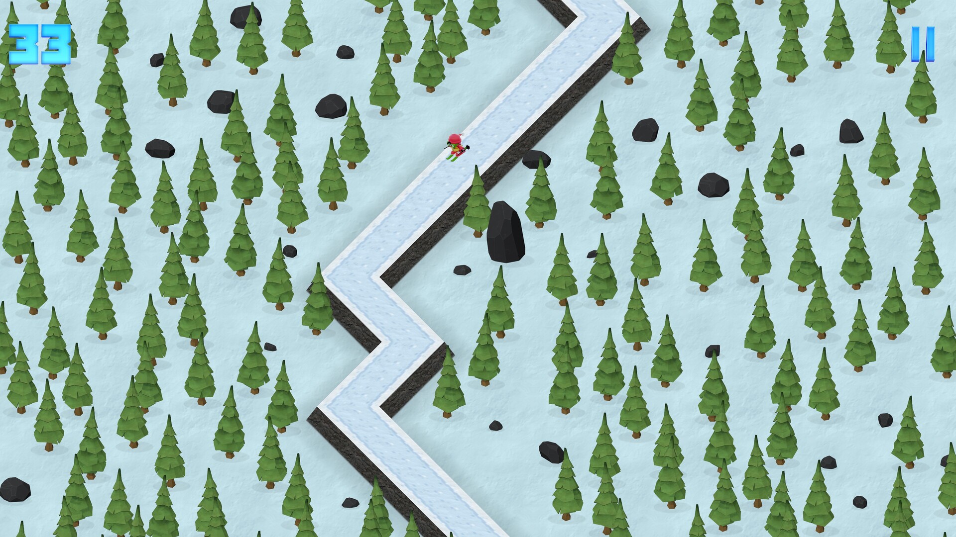 Race down the slope and try to beat your high score. Each turn adds to your score, and each point makes the run harder.
